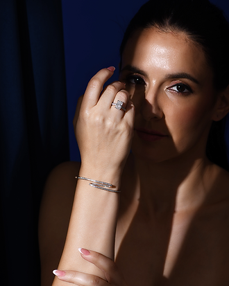 A striking rose gold crossover design featuring five brilliant bezel-set center stones. Boldly designed and meticulously set, this ring is the ultimate signature accessory.